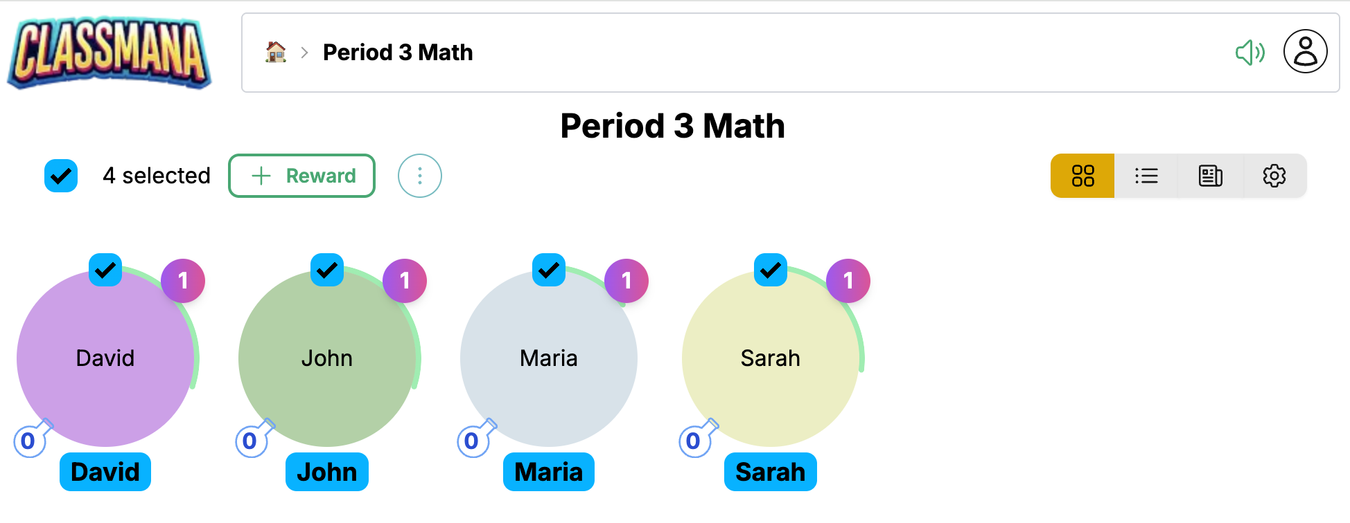- Kliknite Nagrada za uporabo na vse izbrane učence